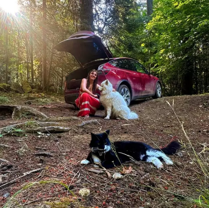 女子辭職帶寵物貓狗住特斯拉開啟「遊牧生活」