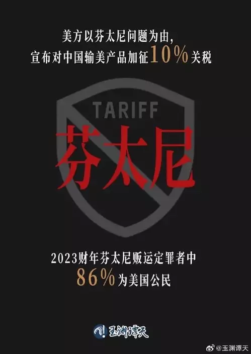 美國東部時間2月1日,美方以芬太尼問題為由,宣佈對中國輸美產品加徵10%關稅。央視新聞旗下公眾號「玉淵潭天」從內部人士處了解到,此舉背後實為轉移國內矛盾的政治操弄,不僅違背事實,不會起到威脅效果,反而將反噬美國自身經濟利益與全球禁毒合作。