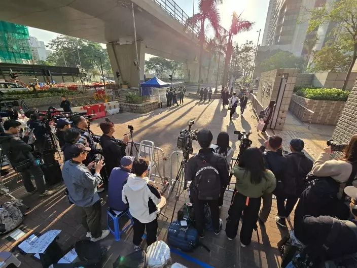 大批傳媒早上到法院外採訪。巴士的報記者攝