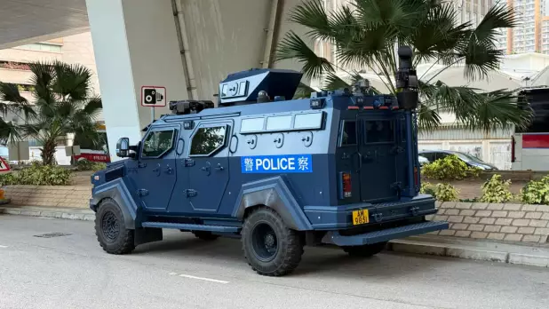 這宗高等法院案件移師西九龍裁判法院審理,早上法院大樓外保安明顯加強,停泊多輛警車及裝甲車「劍齒虎」,大批警員在附近戒備,亦出動警犬巡邏,截查駛經法院的車輛。