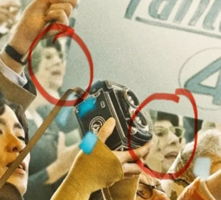 海報的人群中出現多個相同的女性面孔。網上圖片