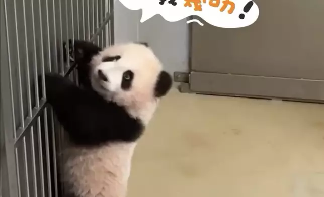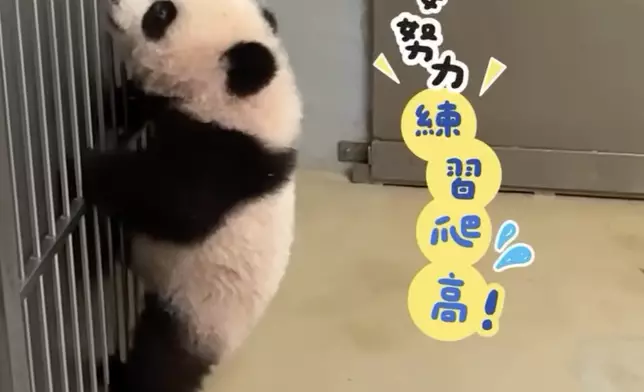 家姐細佬發片,來一個後場實錄大公開。熊貓識爬樹大家都知,但熊貓館後場沒有樹爬,家姐就走去爬鐵閘,只見牠手腳並用,成功爬上鐵閘隻腳離地,隨即露出看似很開心的表情,似乎想表示,自己爬高擒低無難度!