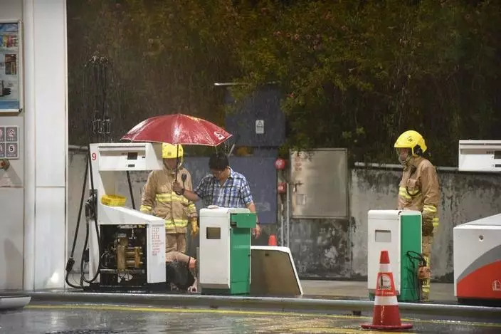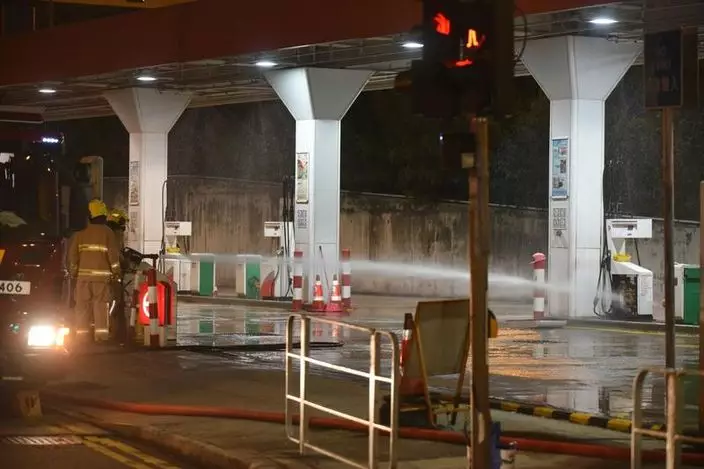 警方接報封鎖現場附近一帶。消防調查後,懷疑站內一部加氣機洩漏氣體,射水戒備。