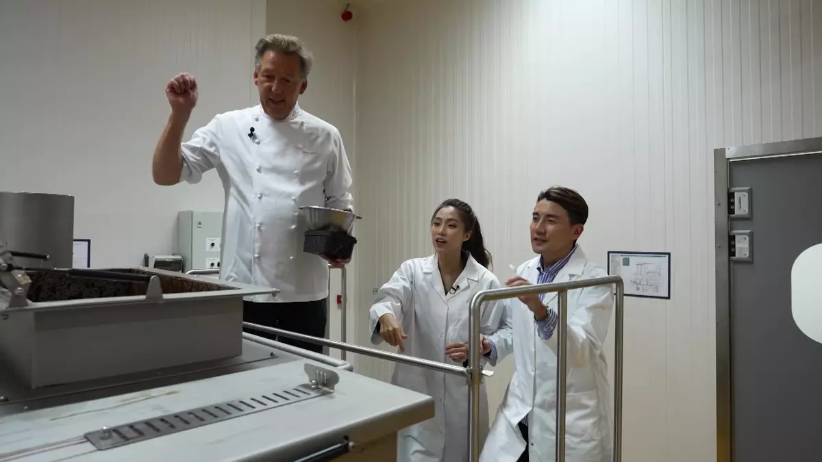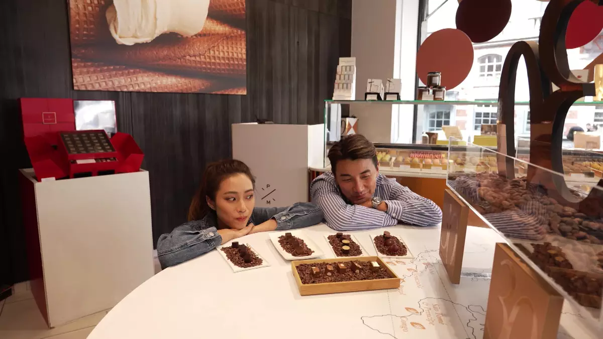 至於第二站比利時,二人率先品嚐了「甜酸苦辣鹹」5種不同口味的朱古力,之後再在朱古力工廠品嚐純100%可可豆。搞笑的是,Tiffany一將純可可放入口,即露出「苦到爆炸」可愛表情,之後當聽到拍檔洪永城若無其事的講述食後感時,竟忍不住好奇追問:「點解你唔覺得苦嘅?」盡顯青澀純真一面。