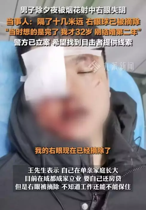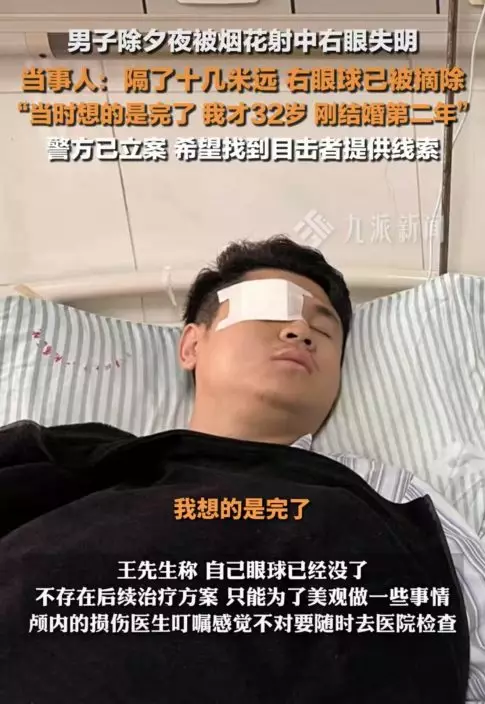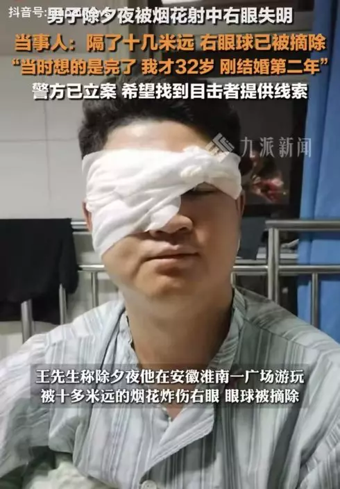 安徽男子睇煙花時不幸被炸傷右眼導致眼球被摘除,警方已介入調查,但尚未找到肇事者。