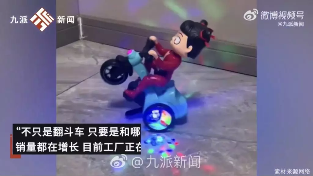 隨著《哪吒2》的熱映,幾年前沒能賣完的「哪吒兒童三輪翻鬥車」突然火了起來。有玩具商家表示,一款叫「哪吒兒童三輪翻鬥車」的玩具從新年後開始熱賣,每天能賣好幾百套,只要一擺出來就會有人來買。