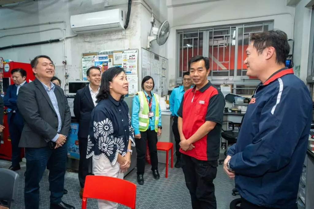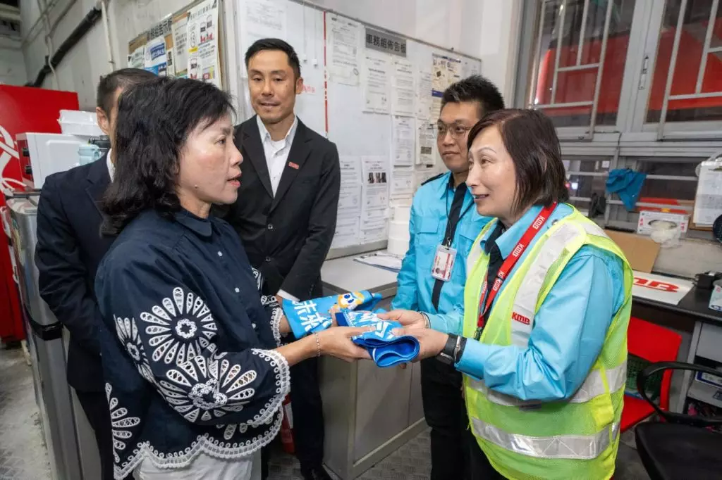 陳美寶與運輸及物流局常任秘書長丘卓恒及其他運流局、運輸署官員早上前往荃灣西巴士總站,在九巴車務總監楊晉瑋和傳訊及公共事務部主管簡學悕的陪同下參觀九巴站長室,與九巴前線車長、站長及站務助理交流,了解九巴前線員工最新日常工作情況,並呼籲他們在投票日積極參與投票。