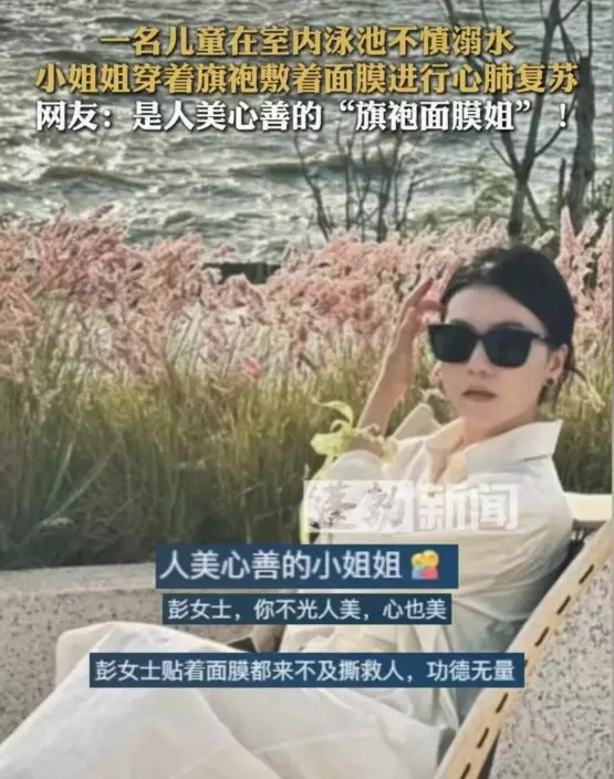彭女為女童實施CPR的相關影片事後也網上流傳開,當時身穿旗袍的她臉上還敷著面膜,因而也被網友封為「面膜女俠」。不過,彭女則表示,「我也是一名母親,有一個女兒」,並稱這只是一件小事,相信換作任何一個人都會出手幫助,她不希望自己因為此事影響到自己的生活,只希望女童能夠平平安安就夠了。