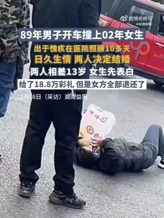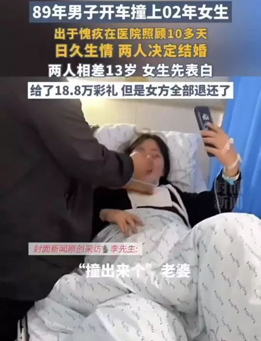 湖南漢駕車撞傷比自己細13歲女生,悉心照料受傷的對方期間與之擦出愛火,最終攜手步入婚姻殿堂。