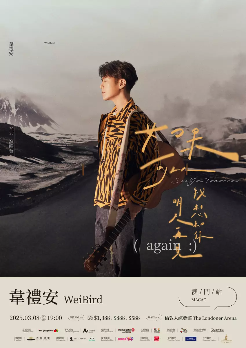 韋禮安將於3月8日在澳門倫敦人綜藝館舉行「如果可以,我想和你明天再見again」2025 演唱會。