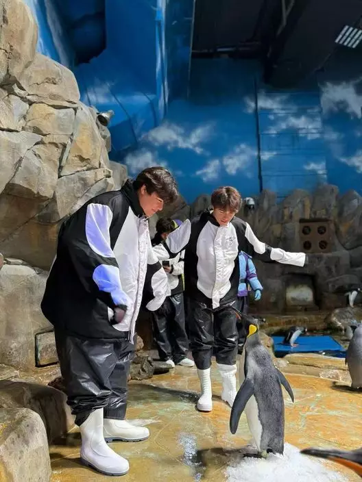 Stokes Twins海洋公園與企鵝一起拍照。旅發局圖片
