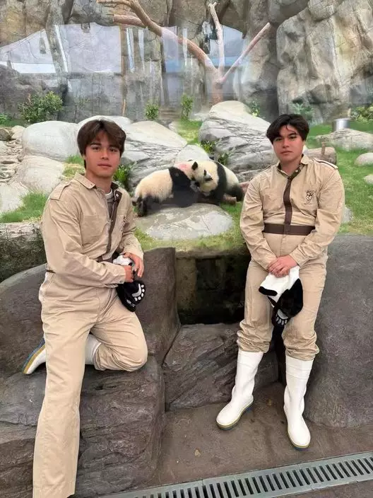 Stokes Twins「香港盛夏派對」之旅到訪海洋公園與龍鳳胎熊貓合影。旅發局圖片