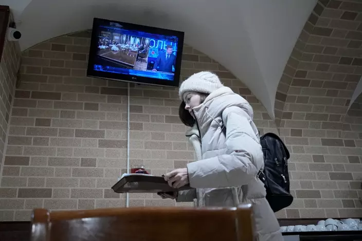 資料圖片:2026年2月2日,一名女子走在華盛頓約翰甘迺迪表演藝術中心外。(美聯社圖片/Rahmat Gul) AP圖片