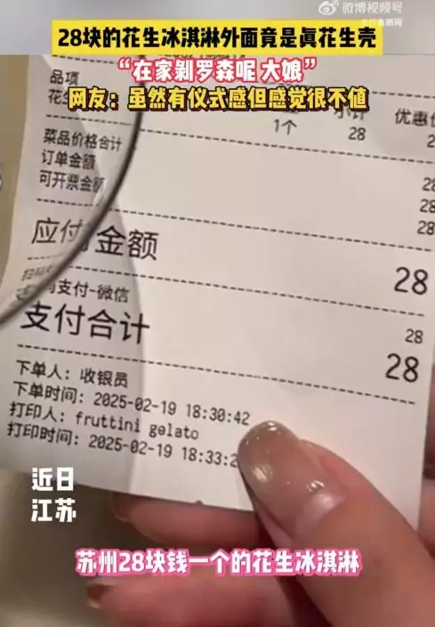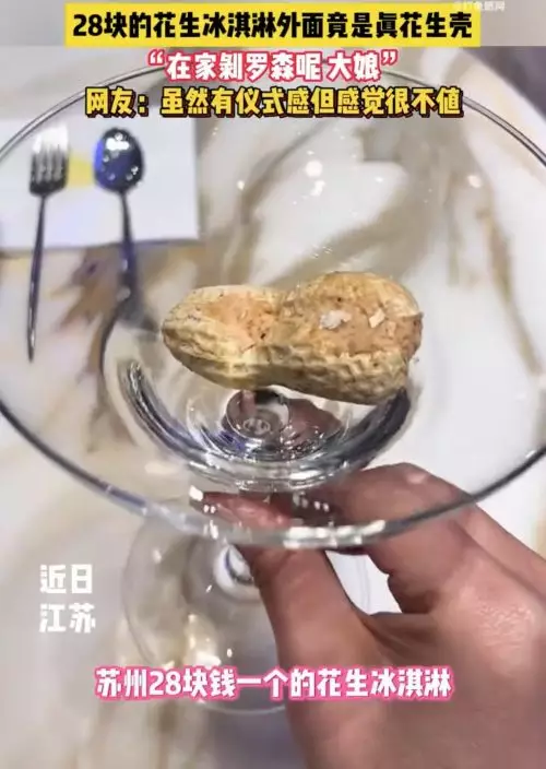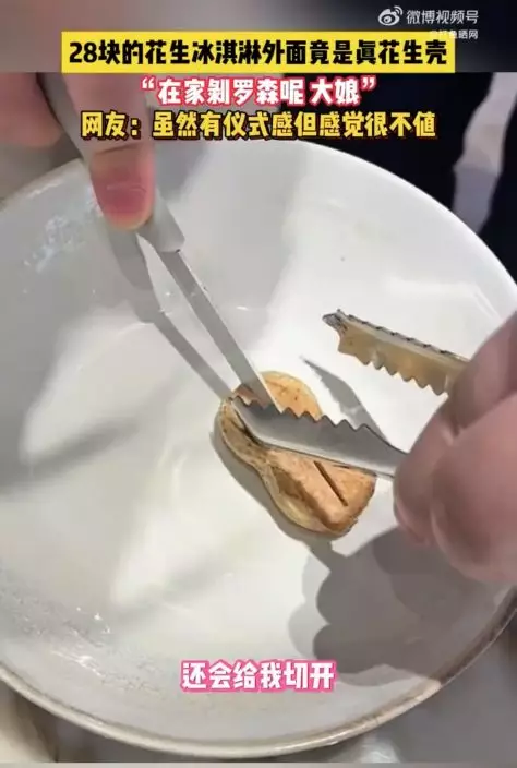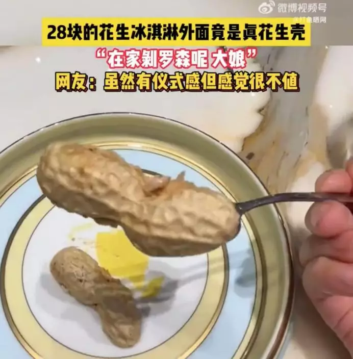 蘇州餐廳用花生殼裝雪糕賣28蚊人民幣,並稱所用原料均係「意大利進口」,引網民質疑:花生殼也是?