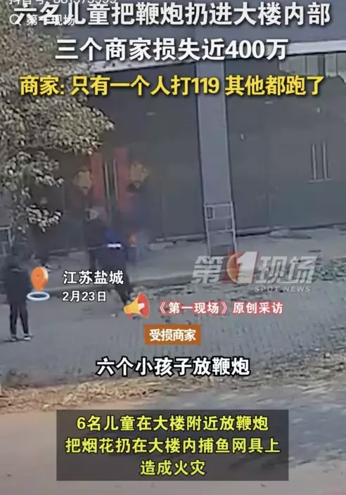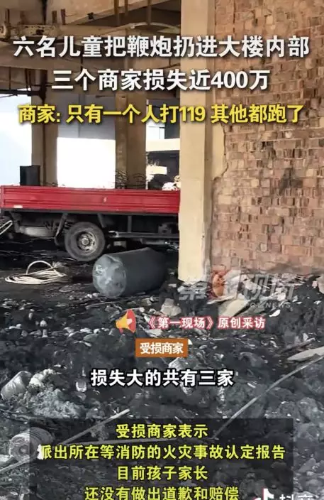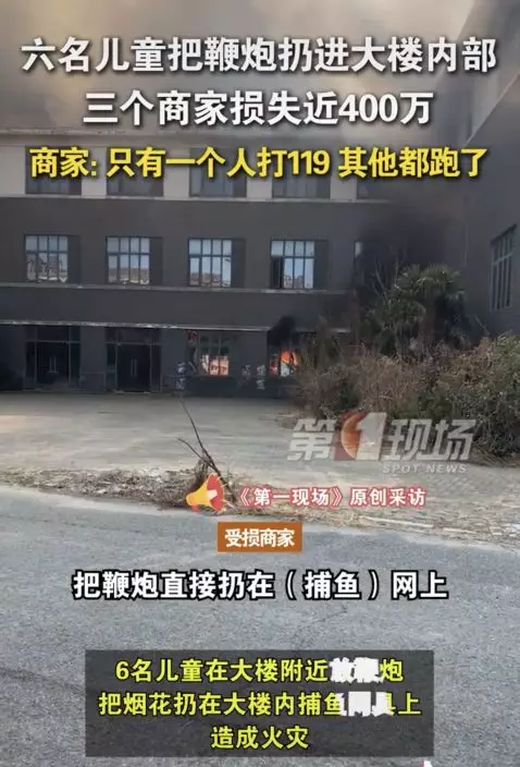 江蘇6孩童奀皮朝工廠內扔炮仗引發火災,導致多家工廠接連被燒毀,初步估計損失達400萬人民幣。