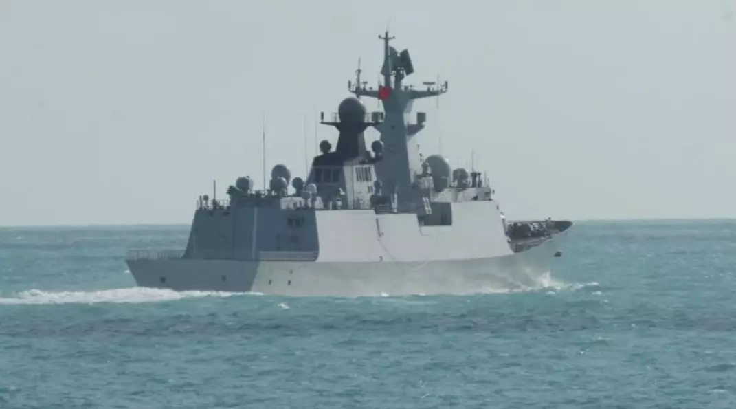 中國護衛艦「衡陽號」在南太平洋國際海域進行演練活動。澳洲國防部網站圖片