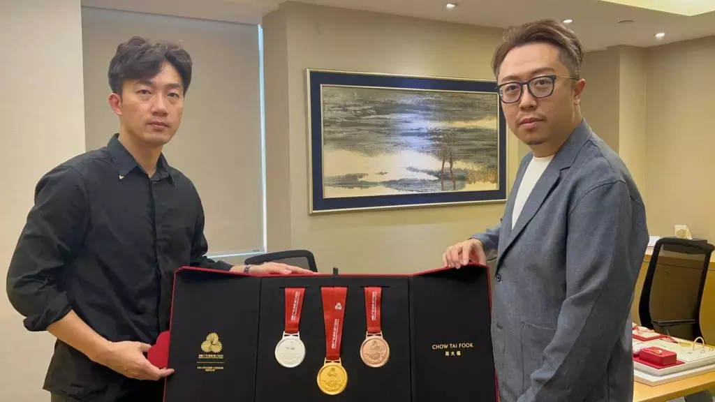 第十五屆全國運動會將於11月舉行,作為官方贊助商,周大福珠寶獲委任負責主理是次獎牌設計及製作。獎牌分為競賽大項和群眾賽事活動兩款。獎牌的會徽面印有全運會的標誌,原本的紅、綠、藍三色,分別代表粵港澳三個地區,但獎牌甚少有顏色,因此將標誌設計為亮面,亦是獎牌最吸睛的部分。