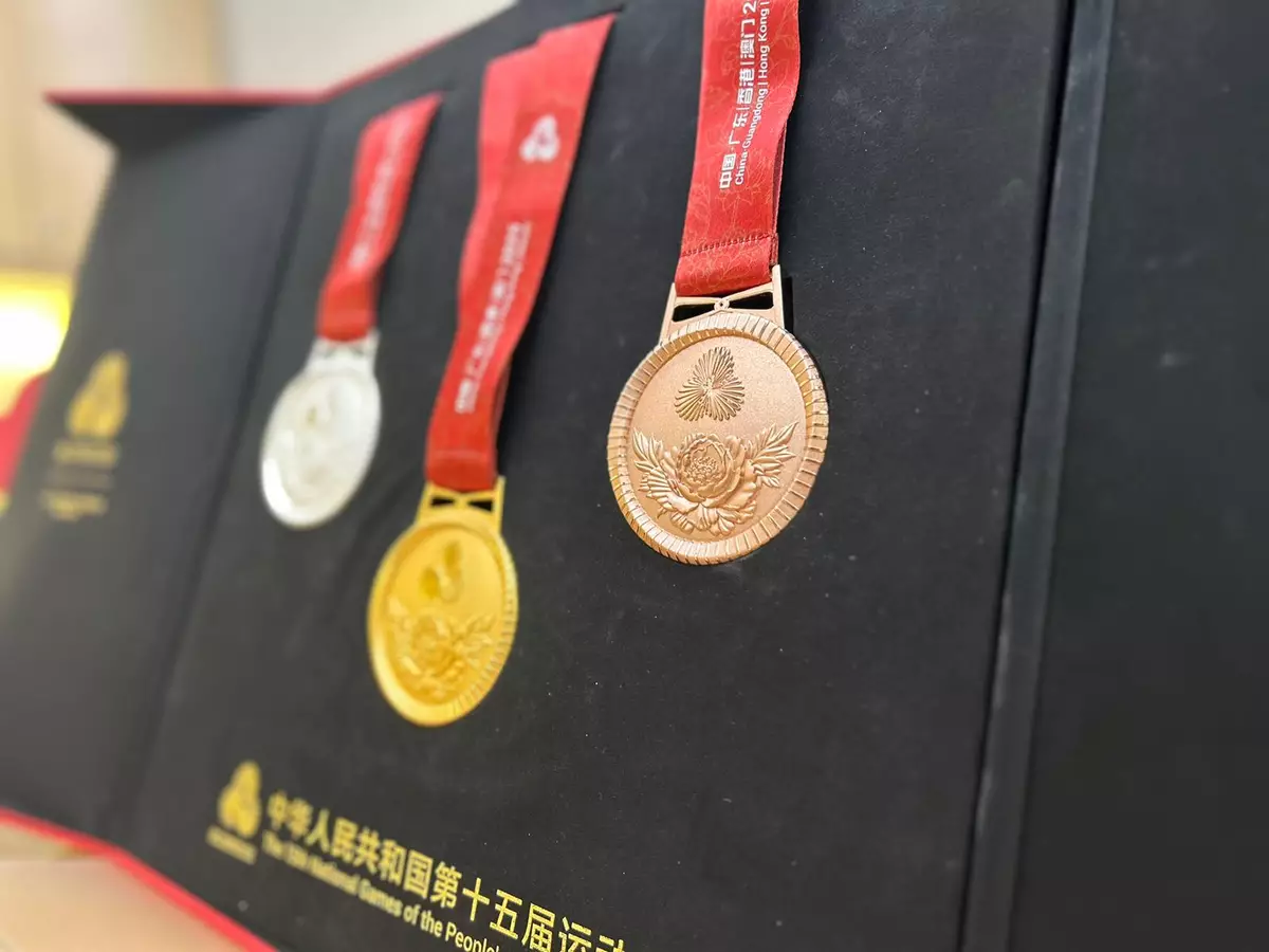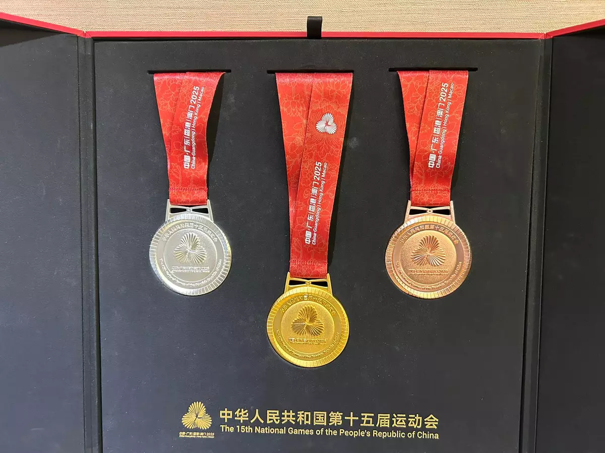 第十五屆全國運動會首度由粵港澳三地聯合主辦,獎牌設計亦突破傳統,由香港團隊設計,設計師林鴻勝與黎偉傑以「三水莫比烏斯環」、「三花映牡丹」等意象構思創作,歷時約半年,結合珠寶工藝,並推出多款周邊產品,推動賽事「與民同樂」。