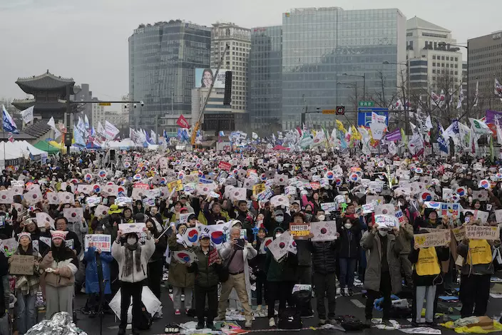 首爾續有要求彈劾總統尹錫悅的示威。AP圖片