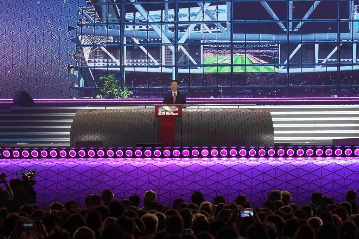 特首李家超相信今後海內外巨星都會以啟德主場館演出為成功代表。巴士的報記者攝