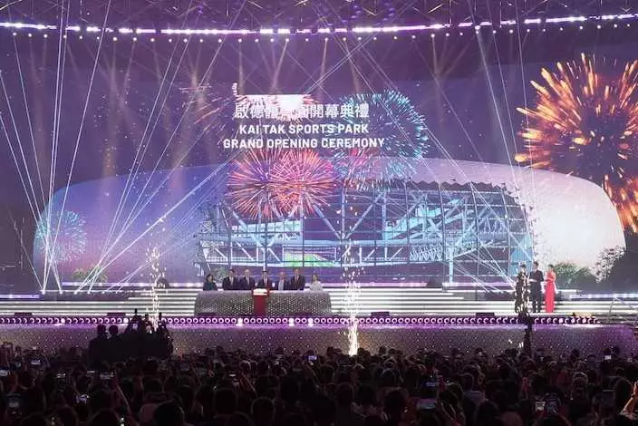 啟德體育園舉行開幕典禮,先播放開場短片,闡述啟德體育園揭幕,之後有擊鼓及舞龍舞獅表演。