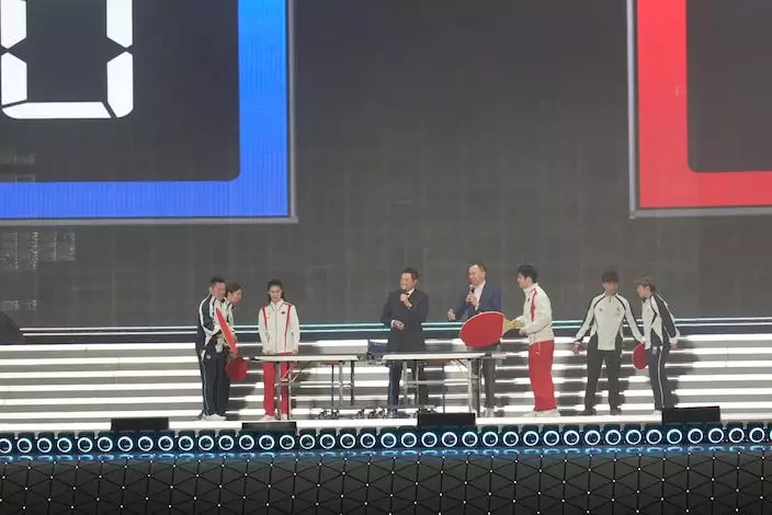 樊振東巨型乒乓球拍打波。巴士的報記者攝