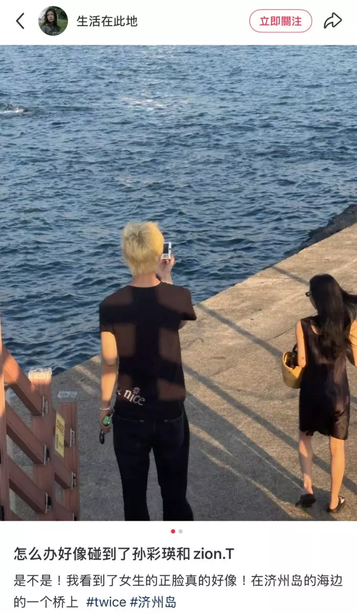 彩瑛與Zion.T濟州島浪漫約會。小紅書截圖