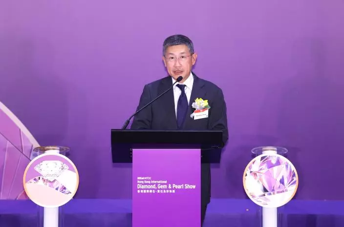 香港貿發局珠寶業諮詢委員會主席周允成致歡迎辭。