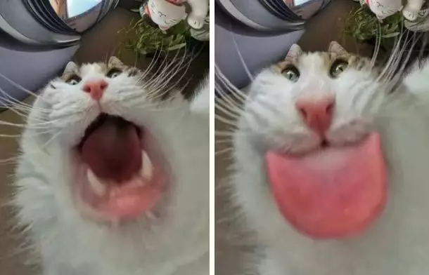 日本一名飼主安裝監控器想捕捉寵物貓可愛進食萌照,結果意外拍攝到一系列「大嘴異形」醜照,令他哭笑不得!
