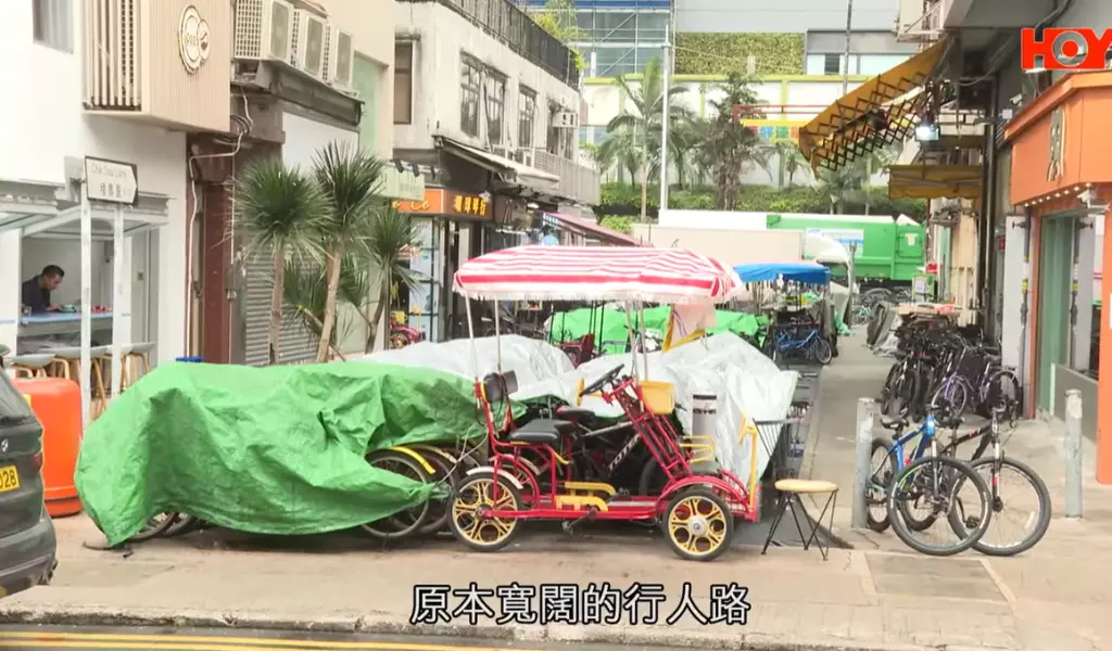 他又透露,近日有居民反映指周末時商用單車的停泊範圍進一步擴大,甚至堵塞整段行人路,居民曾嘗試與店家溝通,卻未見改善。
