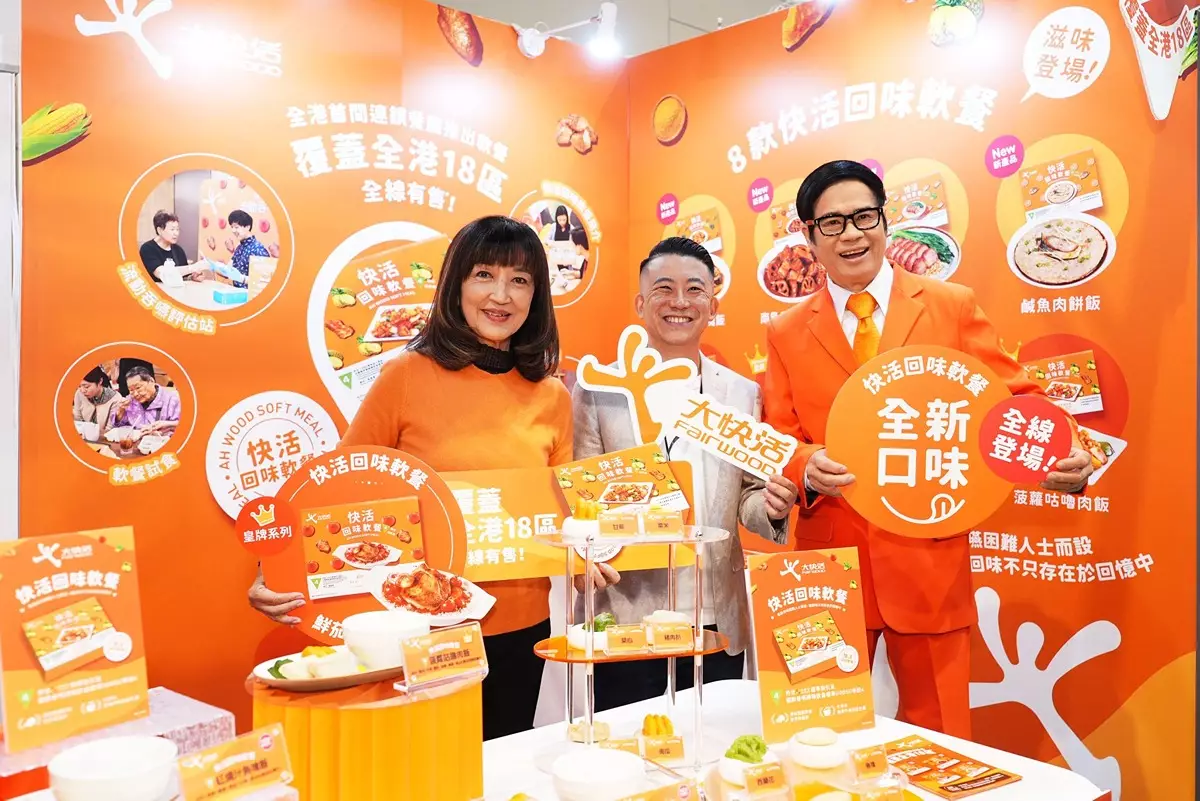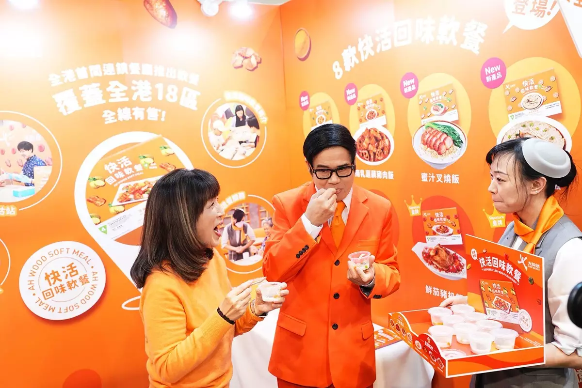 大快活一直積極關注樂齡長者的餐飲需要,並成為香港首間推出照護食軟餐的連鎖快餐店。其「快活回味軟餐」旨在為長者提供尊嚴、安全且營養均衡的膳食選擇,讓他們重拾進食樂趣,回味昔日味道與美好回憶。適逢「樂齡科技博覽」於香港灣仔會議展覽中心舉行,大快活於現場設置展位,公布「快活回味軟餐」即日起於全港超過140間大快活分店正式開售*,服務覆蓋全港十八區,讓長者能更便捷地享用安全美味的多款軟餐。「快活回味軟餐」首四款皇牌產品更是第一批獲得香港大學吞嚥研究所測試的產品,符合國際吞嚥障礙飲食標準(IDDSI) 及照護食標準指引等級4標準。為提供更多選擇,是次亦同步推出四款全新口味。同時,更邀請到藝人安德尊及馬海倫到現場,與大眾互動,讓照顧者及長者們對照護食軟餐有更深的了解。