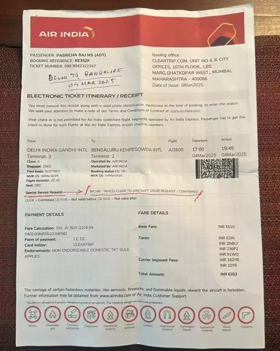 坎瓦爾對於此次經歷感到極為不滿,她在貼文中標記印度航空,認為公司如果提供完善服務,悲劇就不會發生,並附上嫲嫲拉吉·帕斯里查的機票截圖,上面提到一項特別要求,即「輪椅至機艙門」,並注明已確認。她表示,目前已向印度民航總局(DGCA)和印度航空提出投訴,期望能夠引起相關部門的重視