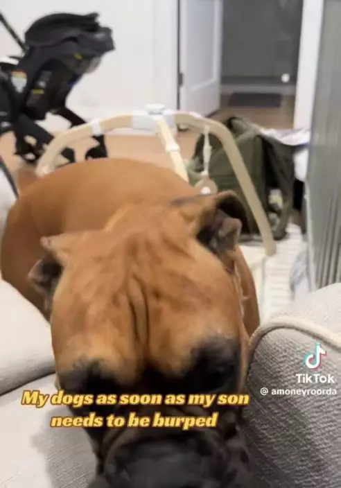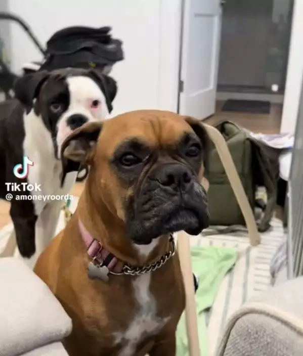 日前,國外一名飼主「@amoneyroorda」於TikTok分享一段趣味經歷指,早前為家中BB掃風期間,竟被家中寵物犬誤會「弄痛」孩子。其中一隻棕色拳師犬Goose神情逐漸變得焦急,並不時發出低鳴聲,似乎以為小主人受到傷害。