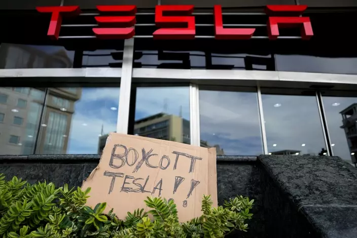 Tesla陳列室近期在全球各地發生抵制及杯葛活動。(AP圖片)