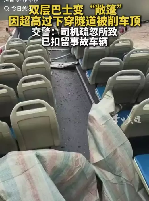 報導指出,造成此次事故的是一名新入職的女司機,由於不熟悉路線而誤入限高隧道。原本司機應該從橋上道路通過,結果因操作不當開錯路,導致上層車頂與隧道發生劇烈碰撞。