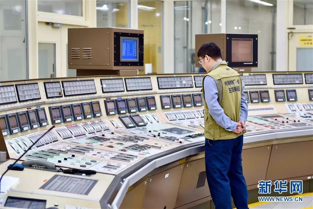 工作人員在嶺澳核電站1號機組主控室監看機組運行情況。資料照片