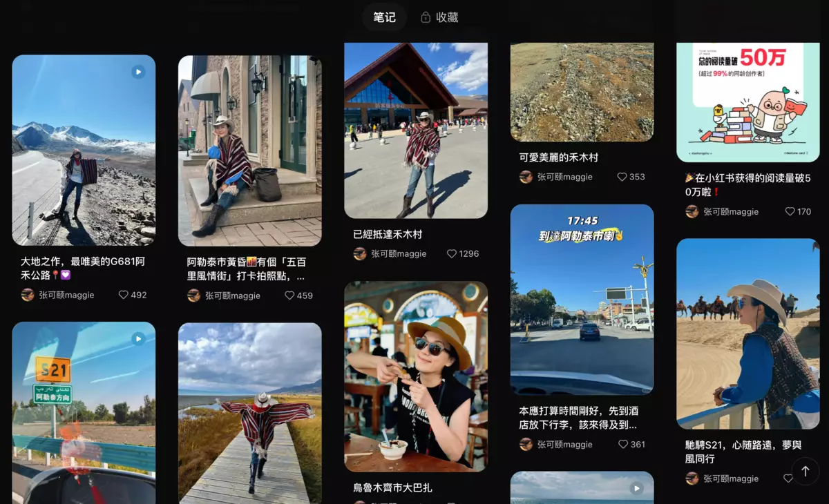 張可頤於9月中與友人去到新疆旅行,心情大靚的她在「小紅書」連環分享大量旅行靚相,短短一個星期就出了近40個posts,可想而知她的心情有多興奮!而從她分享的靚相可見,她除了去到多個不同的景點欣賞美景外、品嚐當地美食外,還穿上民族服裝化身「新疆美人」,感受民俗風情,網民都紛紛大讚她美貌依舊、氣質依舊!