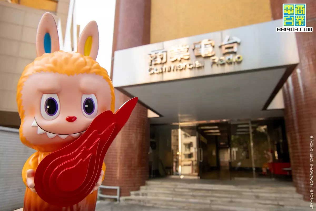 「大眼睛看世界,尖耳朵聽著歌」—— 商業電台首度與LABUBU之父、香港藝術家龍家昇(Kasing Lung)及創意團體HOW2WORK聯乘合作,推出限量300隻LABUBU x 叱咤 x HOW2WORK 「LABUBU Radio Art Toy」。這款由龍家昇親自設計的橙色「LABUBU Radio Art Toy」,不僅在尖耳朵加入商業電台標誌上的藍黃配色,更手持紅色「叱咤火」,象徵創意力量源源不絕、薪火相傳,將廣播與藝術創作緊密結合,攜手推動本地創意文化。