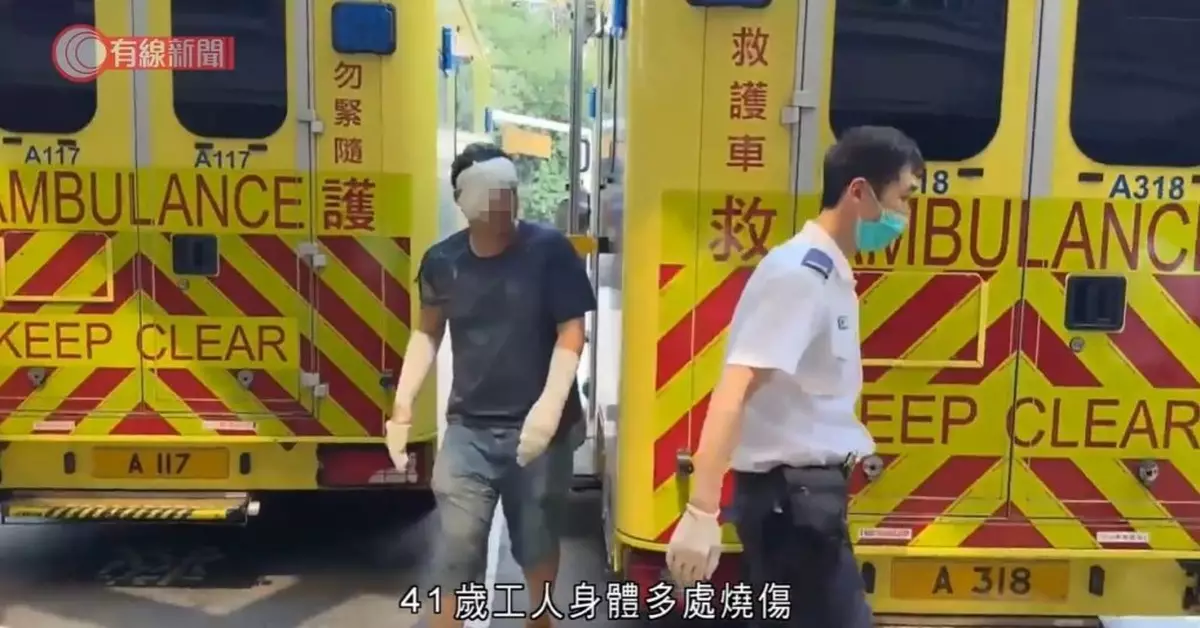 41歲工人身體多處燒傷。下午1時左右,事主在福佬村道唐樓地下鑽牆時突然有火噴出,他走避不及燒傷。