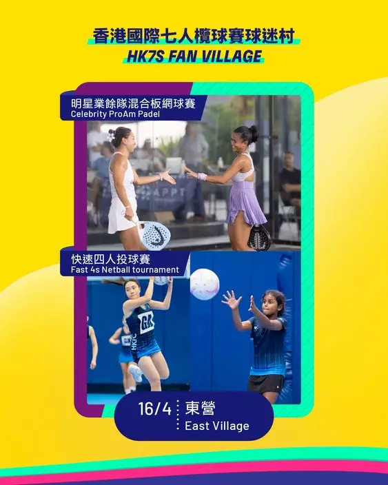 三日賽事期間,園區多處將有一系列精彩活動。啟德主場館的開合式天幕將於4月18及19日打開,並有現場音樂表演。東營的「七欖球迷村」將全日開放,讓球迷購買周邊商品及體驗籃網球等活動。此外,啟德青年運動場將上演國泰青年七人欖球邀請賽及新增的「Primal Race」體能賽,而香港賽馬會「CHILL級啟德體能節2026」則在啟德體藝館提供互動體育體驗。