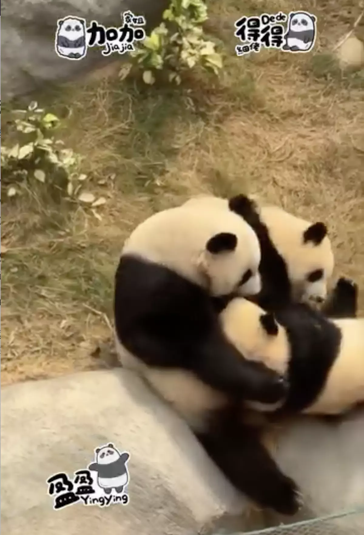 另外,園方又指近期「奶爸」「奶媽」不再需要戴手套和保護衣的原因,是「家姐」和「細佬」已日漸長大,身體免疫力提高了,而且盈盈又多了時間照顧兩B,「奶爸」和「奶媽」也不用再經常貼身照顧。