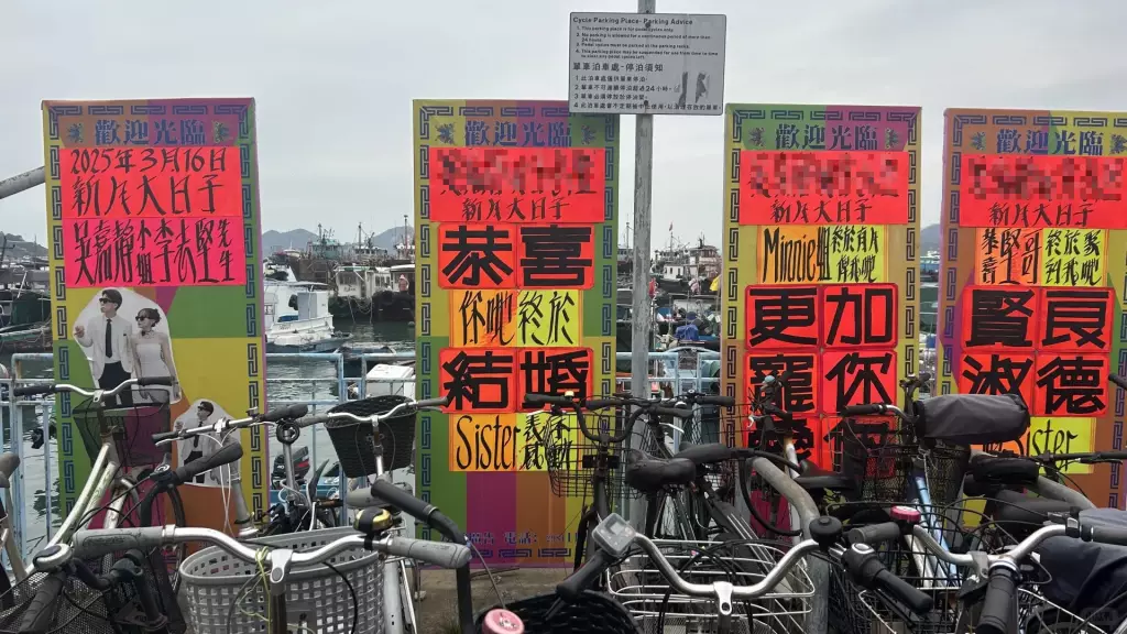 近日就有內地遊客在小紅書上分享偶遇極具香港傳統特色的喜事,該網友以「在長洲結婚要全島廣播嗎」為題撰文,分享自己抵達長洲一落船步出碼頭,便已被眼前的一幕所驚呆,只見印有島上居民結婚喜訊的紅紙黑字花牌映入眼簾,網友更大讚花牌字體「很有特色」,「這些字彷彿自帶語音,可真熱鬧啊」。事主又驚訝長洲居民結婚竟然要放置花牌宣傳,讓喜事全島共享。