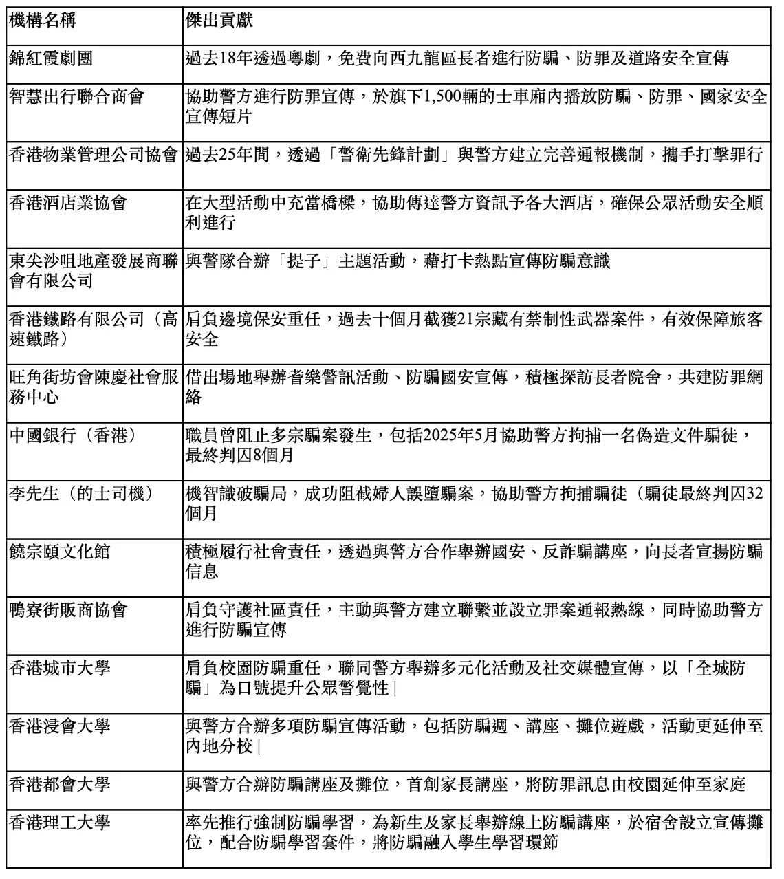 社區滅罪夥伴嘉許單位: