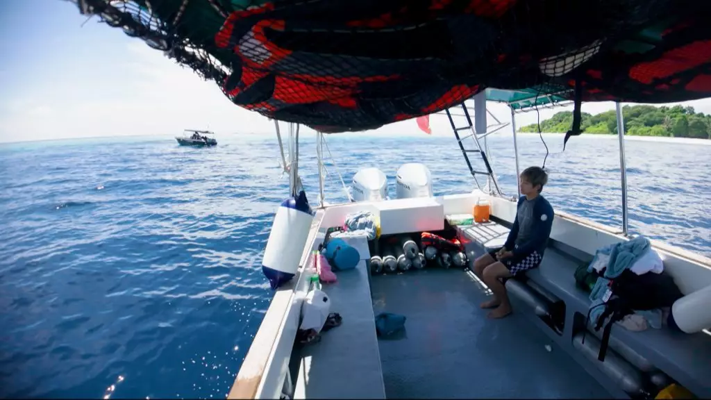 Alton只可以默默看着拍攝團隊與Chris下水,自己只能可憐地坐在船上等待。