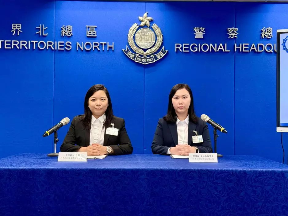 警方新界北總區公眾活動調查組總督察梁綺薇(左)及刑事情報組高級督察譚明珠現向傳媒簡報案情。