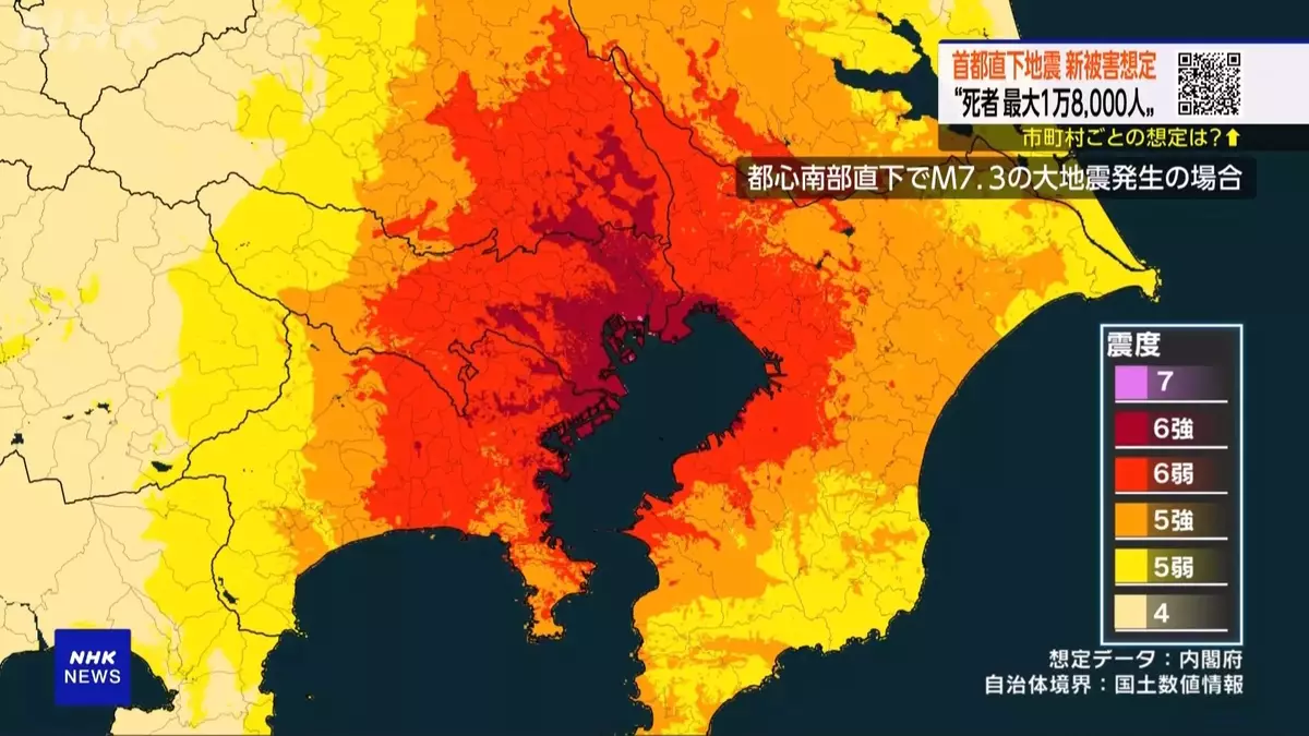 日本政府一個專家小組估計,首都地區30年內約有七成機會發生黎克特制7級左右的直下型地震,最嚴重可能造成18000人死亡,當中三分二因為遭遇火警而喪生。