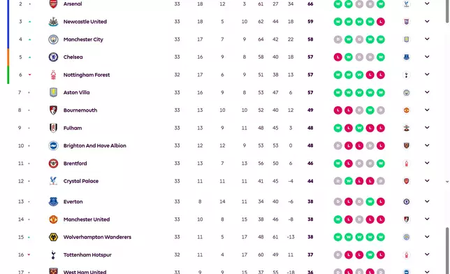 曼聯不僅在中游掙扎,更有滑向降級邊緣的危險。與此同時,葉士域治、李斯特城和修咸頓依然深陷降級區。除修咸頓幾乎篤定降班外,其他球隊的命運仍有懸念。賽季末的每場比賽都將決定這些球隊的未來,是成功護級還是跌入次級聯賽,拭目以待。