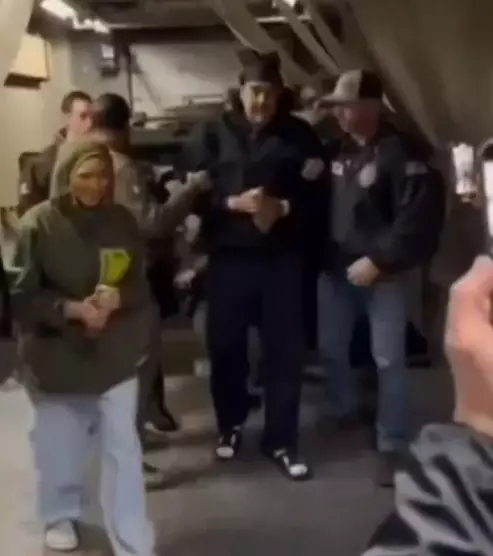 馬杜羅夫婦出現在美國緝毒局辦公室內,當時弗洛雷斯身穿綠色外套,走在馬杜羅前面。