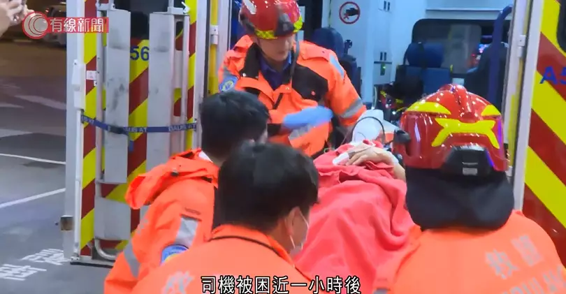 男司機腳部受傷,被送往屯門醫院治理。有線新聞影片截圖