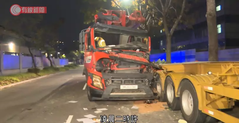 事發於凌晨2時許,該泥頭車沿宏利街向福喜街方向行駛期間,撞上停泊路邊的拖車。意外導致泥頭車司機被困,需由救援人員協助脱困。司機救出時呈半昏迷狀態,警方正調查意外原因。